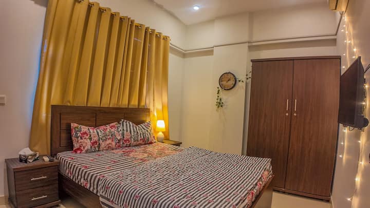 Welcome to our sleek and spacious 3-bedroom apartment, designed for comfort and style. Located in the heart of Karachi, this home is ideal for families, groups, or business travelers seeking a modern retreat with all the conveniences of home. Enjoy a private rooftop access with beach view and enjoy the exotic sunsets on the beach city!